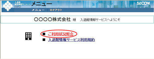 - 1 メニュー画面で[ご利用状況照会]をクリックします。