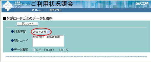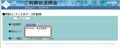 - 「■契約コードごとのデータを取得」画面が表示されます。