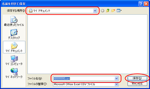 - ◆ 上記の画面はCSV形式を選択した場合です。