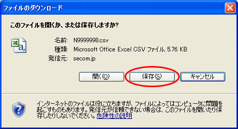 - 6 下記の画面が表示されます。ファイルを保存する場合は、[保存(S)]を選択します。